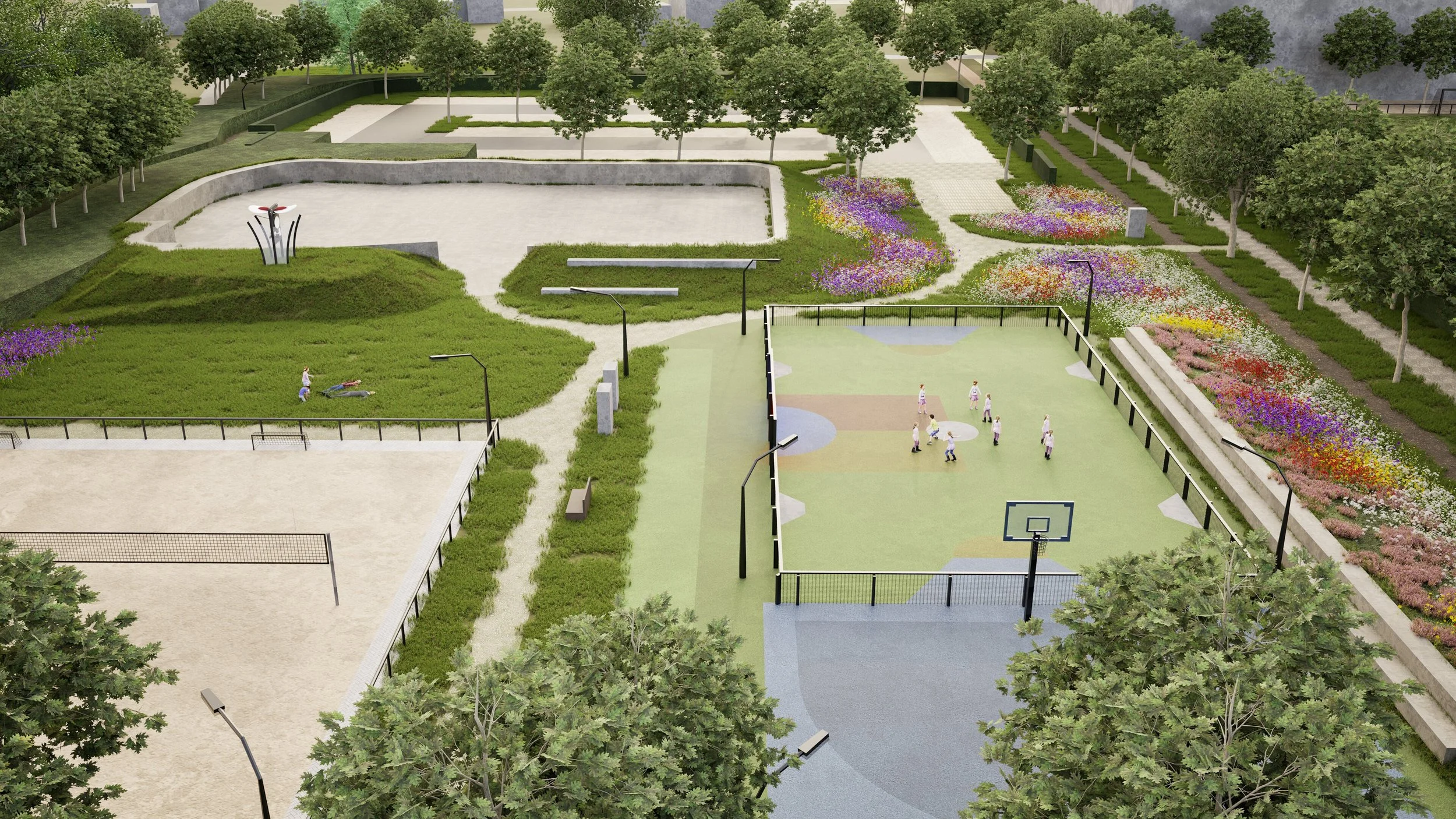 In onderaanneming van B+ Architecten uit Genk werd een masterplan en aanbestedingsdossier opgesteld voor het herinrichten van de sport en recreatiemogelijkheden rond de stedelijke sporthal “De Duin”.